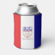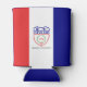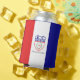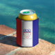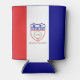 Can cooler with flag of city of Cleveland, Ohio; flag with three vertical bands of red, white and blue with seal of the city in the centre