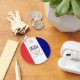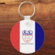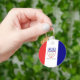 Button Keychain with flag of city of Cleveland, Ohio; flag with three vertical bands of red, white and blue with seal of the city in the centre