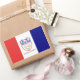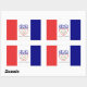 Sticker with flag of city of Cleveland, Ohio; flag with three vertical bands of red, white and blue with seal of the city in the centre