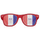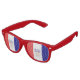 Sunglasses with flag of city of Cleveland, Ohio; flag with three vertical bands of red, white and blue with seal of the city in the centre