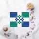 Postcard with a design with the flag of Columbia, Missouri. A blue and green flag with a white cross
