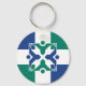 Keychain with a design with the flag of Columbia, Missouri. A blue and green flag with a white cross