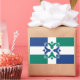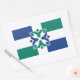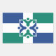 Stickers with a design with the flag of Columbia, Missouri. A blue and green flag with a white cross