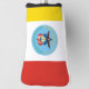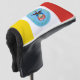 Golf putter cover with flag of city of Columbus, Ohio; flag with three vertical bands of yellow, white and red with blue seal of the city with bald eagle in the center