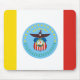 Mousepad with flag of city of Columbus, Ohio; flag with three vertical bands of yellow, white and red with blue seal of the city with bald eagle in the centre