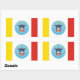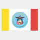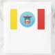 Sticker with flag of city of Columbus, Ohio; flag with three vertical bands of yellow, white and red with blue seal of the city with bald eagle in the centre