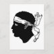 The flag of Corsica portrays a Moor's head in black wearing a white bandanna above his eyes on a white background. The flag of Corsica is a symbol of freedom.