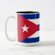 This design features the national flag of Cuba (officially the Republic of Cuba), which is a country comprising the island of Cuba as well as Isla de la Juventud and several minor archipelagos. Cuba is located in the northern Caribbean where the Caribbean Sea, Gulf of Mexico and Atlantic Ocean meet. The national flag of Cuba consists of five alternating stripes (three blue and two white) and a red equilateral triangle at the hoist, within which is a white five-pointed star. It was first designed in 1842 and officially adopted in 1902.