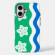 iPhone 16 Case with design with a flag of historic county of Cumberland, in England, Great Britain; green flag with three Parnassus flowers and white and blue waves