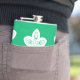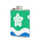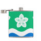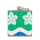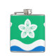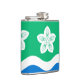 Vinyl wrapped flask with design with a flag of historic county of Cumberland, in England, Great Britain; green flag with three Parnassus flowers and white and blue waves