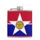 Vinyl wrapped flask with flag of city of Dallas, Texas; flag with red and blue horizontal bands with seal of the city inside of a white star in the centre