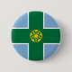 Round Button with design with a flag of historic county of Derbyshire, in England, Great Britain; blue flag with a green cross and a gold Tudor rose in the centre