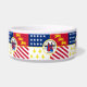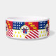 Pet Bowl with flag of city of Detroit, Michigan; red, white and blue flag with stars and stripes, fleur-de-lys, dragons and seal of the city