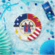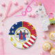 Paper Plate with flag of city of Detroit, Michigan; red, white and blue flag with stars and stripes, fleur-de-lys, dragons and seal of the city