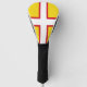 Golf Head Cover with design with a flag of historic county of Dorset, in England, Great Britain; yellow flag with a white cross with a red border