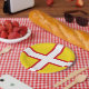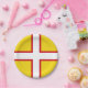 Paper plate with design with a flag of historic county of Dorset, in England, Great Britain; yellow flag with a white cross with a red border