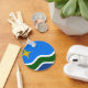Keychain with a design with the flag of Duluth, Minnesota. A blue, green, and white flag with a yellow star