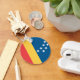 Keychain with the flag of lag of Durham, North Carolina. A red, yellow, and blue flag with seven white stars
