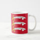 Mug with design with a flag of historic county of Essex, in England, Great Britain; red flag with three white, gold hilted Saxon swords (Seaxes)