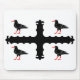 Mousepad with design with a flag of historic county of Flint, in Wales, Great Britain; white flag with a black engrailed fleury cross and four choughs