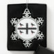 Snowflake Ornament with design with a flag of historic county of Flint, in Wales, Great Britain; white flag with a black engrailed fleury cross and four choughs