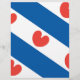Flag of Friesland, a province in The Netherlands. It consists of blue and white diagonal stripes; in the white stripes are red pompeblêden, leaves of the yellow water-lily, that may remind one of hearts, but according to the official instructions "should not be heart-shaped".