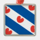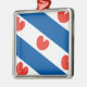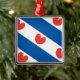 Flag of Friesland, a province in The Netherlands. It consists of blue and white diagonal stripes; in the white stripes are red pompeblêden, leaves of the yellow water-lily, that may remind one of hearts, but according to the official instructions "should not be heart-shaped".