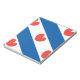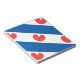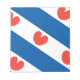 Flag of Friesland, a province in The Netherlands. It consists of blue and white diagonal stripes; in the white stripes are red pompeblêden, leaves of the yellow water-lily, that may remind one of hearts, but according to the official instructions "should not be heart-shaped".