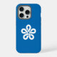iPhone 14 Case with a design with the flag of Fukuoka Prefecture in Japan (福岡県 , Fukuoka-ken), a blue flag with a white symbol