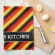 This kitchen towel design features a pattern of stripes (or lines) coloured black, red or yellow. These colours were inspired by those of the national flag of Germany. This could be a great gift for somebody from Germany, or even for somebody who just really likes the country of Germany a lot. It also features a custom name.