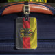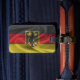 Luggage tag with the flag of Germany in wavy fabric style design. This design features the German flag horizontally striped flag of black, red, and gold colours with a beautiful waving material textured effect. This flag design is a great way to show you are proud to be from Germany.