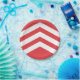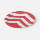 Paper plate with design with a flag of historic county of Glamorgan, in Wales, Great Britain; red flag with three chevronels argent, the flag was a banner of the arms of Iestyn ap Gwrgant, the last ruler of the Kingdom of Morgannwg
