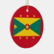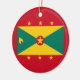 This design features the national flag of Grenada, which is a country in the West Indies in the Caribbean Sea at the southern end of the Grenadines island chain. Grenada consists of the island of Grenada itself, two smaller islands, Carriacou and Petite Martinique, and several small islands which lie to the north of the main island and are a part of the Grenadines. Grenada is situated to the northwest of Trinidad and Tobago, to the northeast of Venezuela and to the southwest of Saint Vincent and the Grenadines. Grenada is known as the "Island of Spice" because of its production of nutmeg and mace crops. An inhabitant of Grenada is known as a Grenadian. The capital of Grenada is St. George's, which is also the country's largest city. Other major cities in Grenada include Sauteurs, Gouyave, Grenville and Hillsborough.