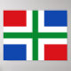 The flag is based upon the flag of the city of Groningen and the coat of arms of the region Ommelanden. The colours red, white and blue are derived from the coat of arms of the Ommelanden, and the white and green are shown in the Groningen town flag. The colours of the town are in the centre of the flag to represent the central location of Groningen town, which is the capital of the province..