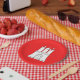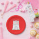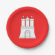 Paper Plate with flag of Hamburg, red flag with illustration of a white castle with three towers