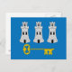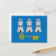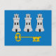 Postcard with design with design with flag of Havana, capital city of Cuba, blue flag with three castles and golden key