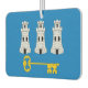 Air Freshener with design with flag of Havana, capital city of Cuba, blue flag with three castles and golden key