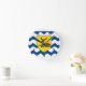 Wall Clock with design with a flag of historic county of Hertfordshire, in England, Great Britain; flag with an illustration of a stag in a yellow shield on white and blue wavy background