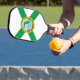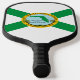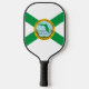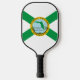 Pickleball Paddle with a design with the flag of Hollywood, Florida. A white flag with a green St. Andrew’s cross and a city seal in the centre