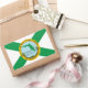 Sticker with a design with the flag of Hollywood, Florida. A white flag with a green St. Andrew’s cross and a city seal in the centre