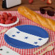 This design features the national flag of Honduras (officially the Republic of Honduras), which is a country in Central America. Honduras is bordered to the west by Guatemala, to the southwest by El Salvador, to the southeast by Nicaragua, to the south by the Pacific Ocean at the Gulf of Fonseca and to the north by the Gulf of Honduras, a large inlet of the Caribbean Sea. Honduras was home to several important Mesoamerican cultures, most notably the Maya, before the Spanish Colonisation in the sixteenth century. The Spanish introduced Roman Catholicism and the now predominant Spanish language, along with numerous customs that have now blended with the indigenous culture. The capital and largest city of Honduras is Tegucigalpa; other major cities are San Pedro Sula, La Ceiba, Choloma, El Progreso, Comayagua, Choluteca, Danlí, La Lima and Villanueva.