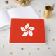 This design features the flag of Hong Kong (officially the "Hong Kong Special Administrative Region of the People's Republic of China", HKSAR), which is a metropolitan area on the eastern Pearl River Delta of the South China Sea. Hong Kong is one of the most densely populated places in the world, and it has the highest number of skyscrapers of any city; its residents have some of the highest life expectancies in the world. The flag shows a white stylised five-petal Hong Kong orchid tree (Bauhinia blakeana) flower in the centre of a red background.