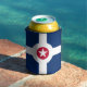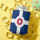 Can cooler with flag of city of Indianapolis, Indiana; blue flag with white cross and red circle with white star in the centre