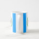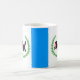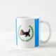 Mug with flag of Irkutsk oblast (Irkutskaya oblast); flag with three horizontal bands of blue and white, with an illustration of stylised black tiger holding a red sable in his mouth in the centre
