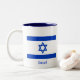 The flag of Israel (Hebrew: דגל ישראל, Degel Yisrael, Arabic: علم إسرائيل) was adopted on October 28, 1948, five months after the country's establishment. It depicts a blue Star of David on a white background, between two horizontal blue stripes. The blue colour is mandated only as "dark sky-blue", and varies from flag to flag, ranging from a hue of pure blue, sometimes shaded almost as dark as navy blue, to hues about 75% towards pure cyan and shades as light as very light blue. The flag was designed for the Zionist Movement in 1891. The basic design recalls the Tallit, the Jewish prayer shawl, which is white with blue stripes. The hexagram in the centre is the Magen David ("shield of David"). It became a Jewish symbol starting in late mediaeval Prague, and was adopted by the First Zionist Congress in 1897