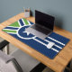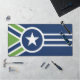 Desk Mat with a design with the flag of Jackson, Tennessee. A blue, green, and white flag