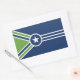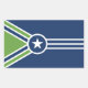 Sticker with a design with the flag of Jackson, Tennessee. A blue, green, and white flag