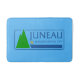 Bath mat with flag of city of Juneau, Alaska; blue flag with stylised illustration of trees