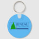 Button Keychain with flag of city of Juneau, Alaska; blue flag with stylised illustration of trees
