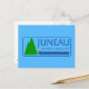 Postcard with flag of city of Juneau, Alaska; blue flag with stylised illustration of trees